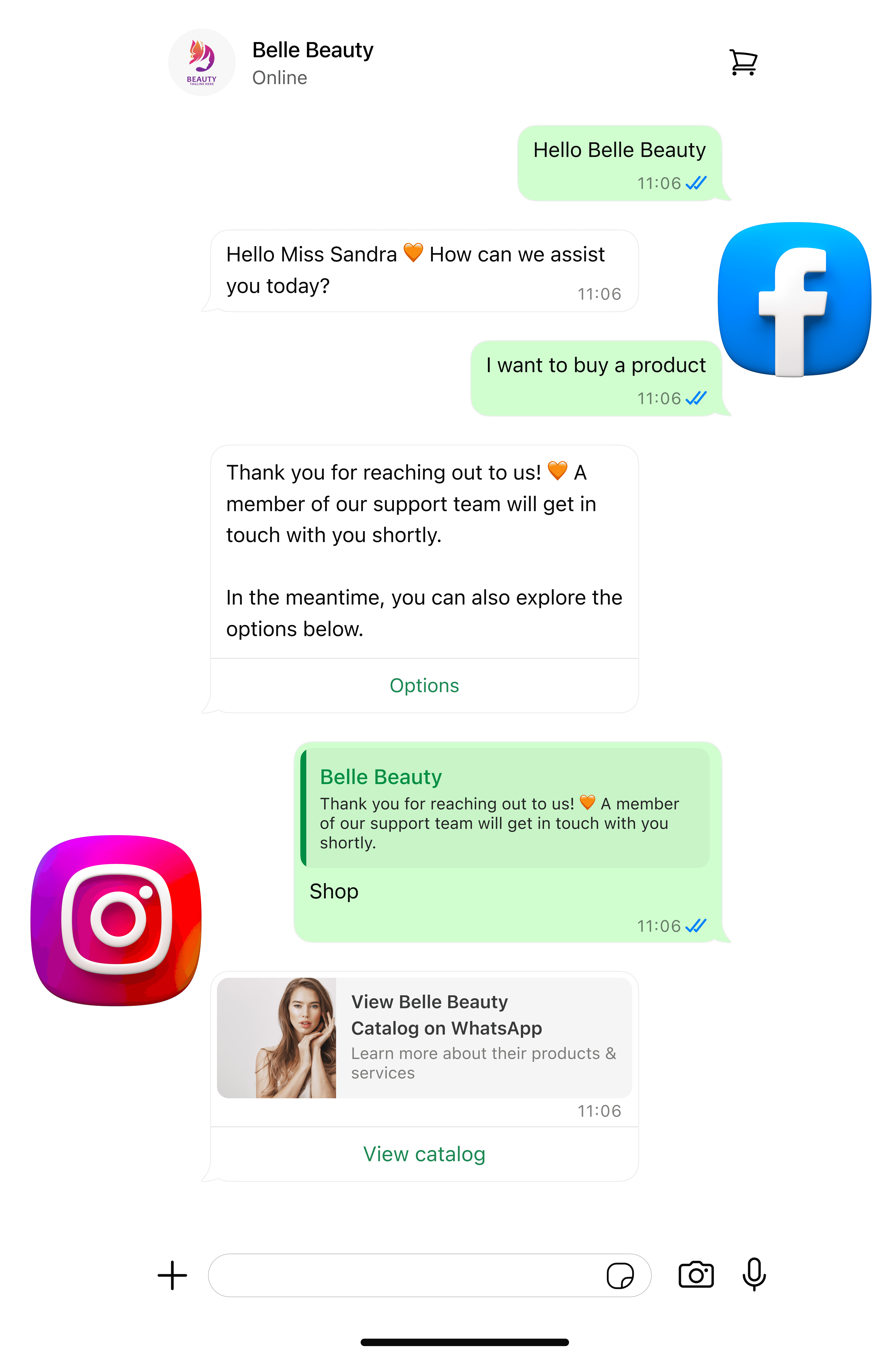 Explore the Stur Marketplace and shop seamlessly across WhatsApp, Instagram, and Facebook. Discover products, ask questions, and complete your purchase all in one chat.